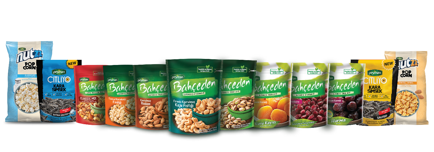 Peyman offers the Kosovar market a rich selection of healthy, gluten-free products through its brands Bahçeden, Çitliyo, and Nutzz. From natural nuts and dried fruits to sunflower seeds and innovative popcorn snacks, Peyman combines premium quality with unique flavors, making it a market leader. With a strong focus on clean, gluten-free production, Peyman caters even to sensitive consumers, while its authentic tastes and modern presentation set it apart from the competition.